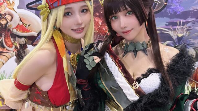美しいツーショット! えい梨、TGS2025最終日に月海つくねと『モンスターハンターアウトランダーズ』のコスプレを披露