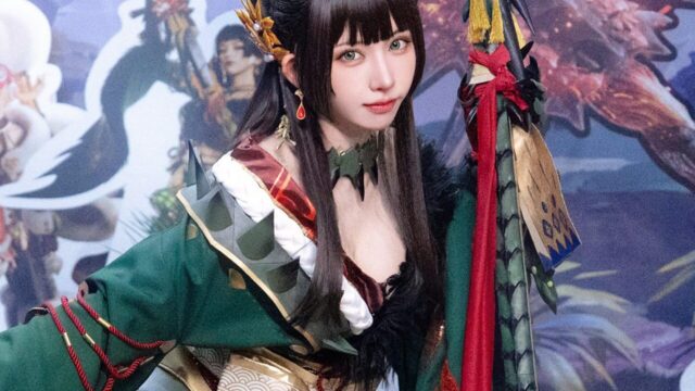 東京ゲームショウで美しすぎる変身! えなこ、『モンスターハンターアウトランダーズ』ミドリのコスプレを披露