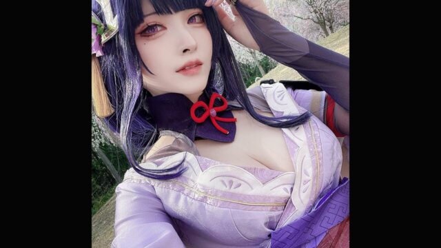 凛々しくも美しい将軍様! 幸まる、『原神』雷電将軍のコスプレで桜と共に絶美ショットを披露