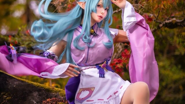 紅葉に映える青髪美人! むうにゃ、『原神』夢見月瑞希の和装コスプレで魅了