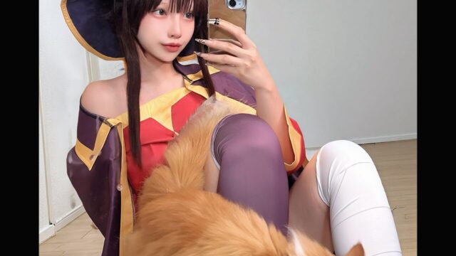 魔法少女とにゃんこのコラボが最高! 惣流みゅぅらんぐれー、『この素晴らしい世界に祝福を!』めぐみんのコスプレで愛猫とツーショット