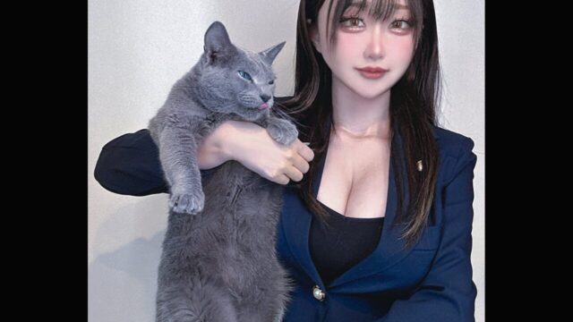 愛猫ナイトと一緒に政治コスプレ! カモミール、紺のスーツで女性総理大臣に変身