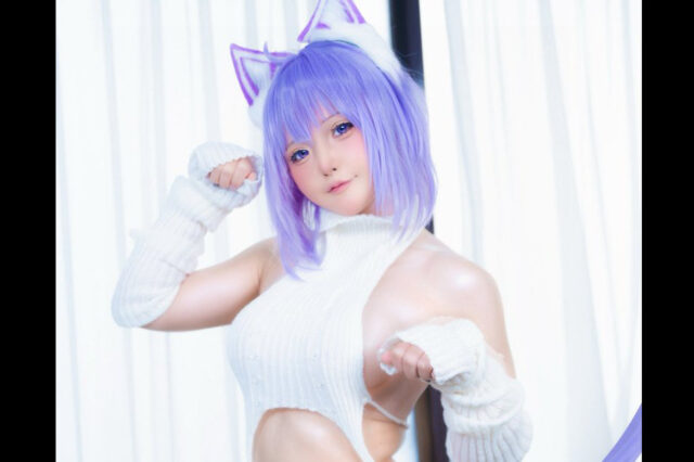 セクシーすぎるケモ耳コーデ! 初音ひとり、紫髪ウェーブに白ニットの大胆衣装を披露