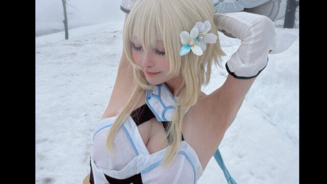 雪景色に映える優雅な蛍! とうか、『原神』蛍の待機モーション姿を雪原で再現