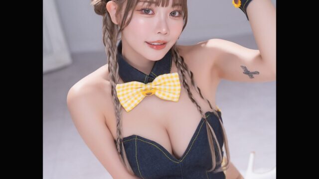 可愛らしいデニムバニー! りなしぃ、カジュアルなバニーガール衣装で魅力をアピール
