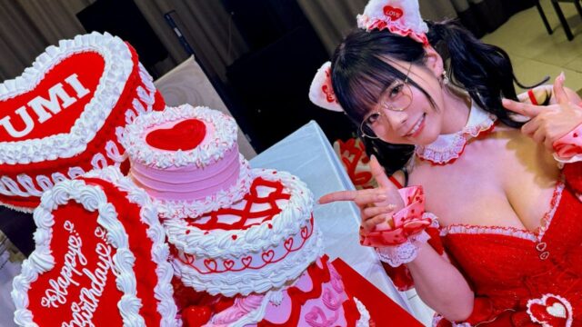 愛らしすぎる赤いドレスでお祝い! 東雲うみ、生誕祭で華やかなドレス姿を披露