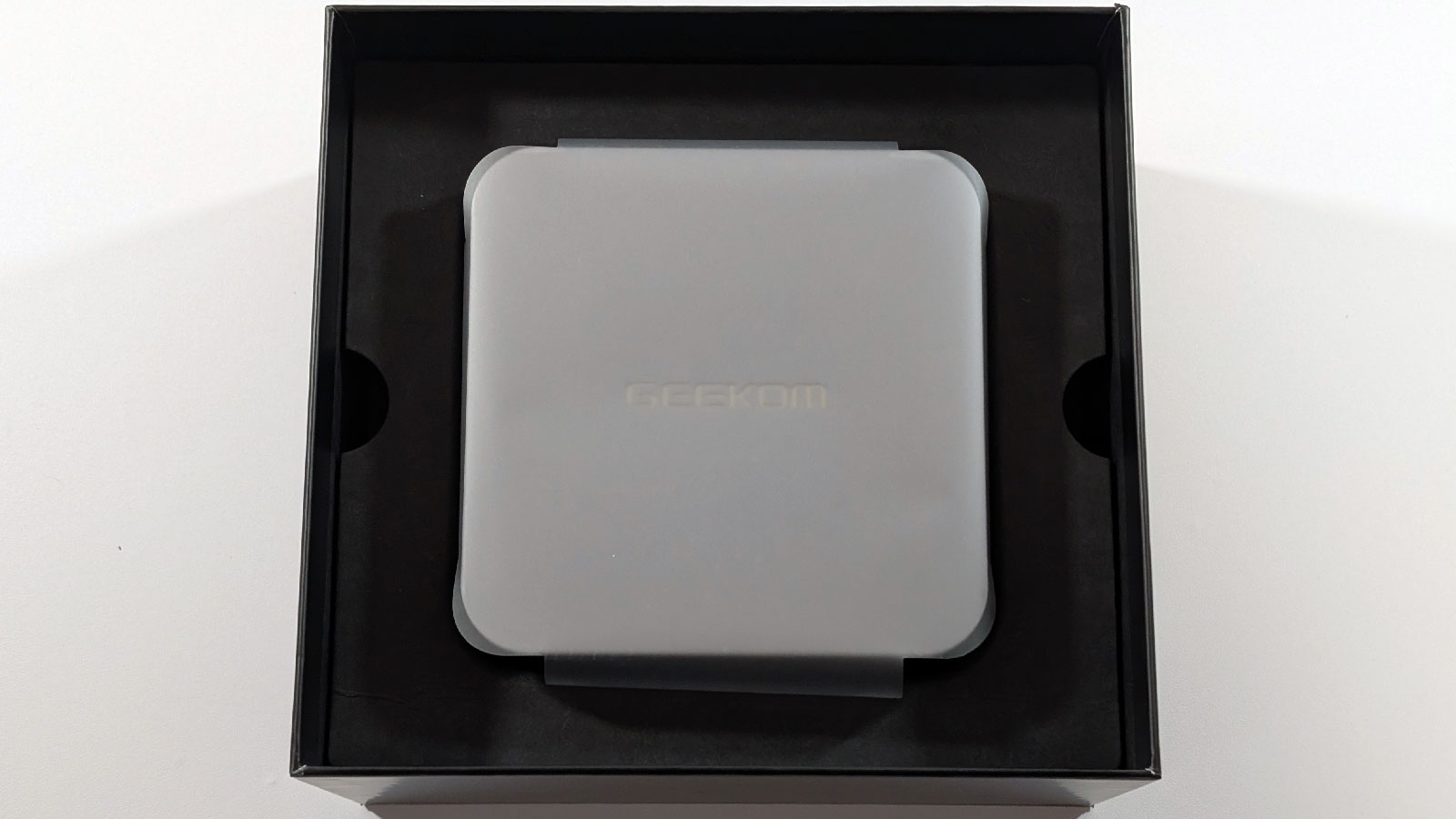 届いた手のひらサイズの箱を開封すると、中にミニPCの本体が入っています。