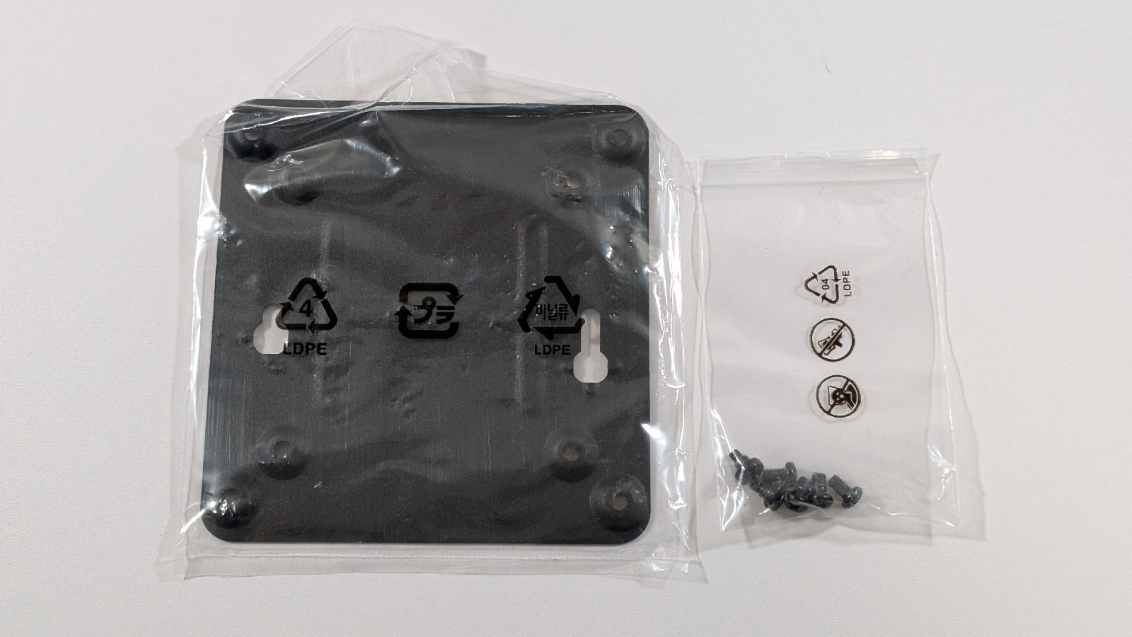 VESAマウントに取り付けるためのプレートとネジも入っています。