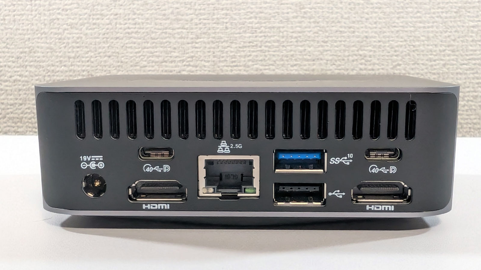 I/O Port | 3 × USB 3.2 Gen 2 Type-A 1 × USB 2.0 Type-A 2 × USB 4.0 Gen 3 Type-C 1 × 3.5mm ステレオヘッドセットジャック 1 × RJ45 2 × HDMI 2.0 1 × DC入力 1 × 電源ボタン 1 × SDカードスロット |