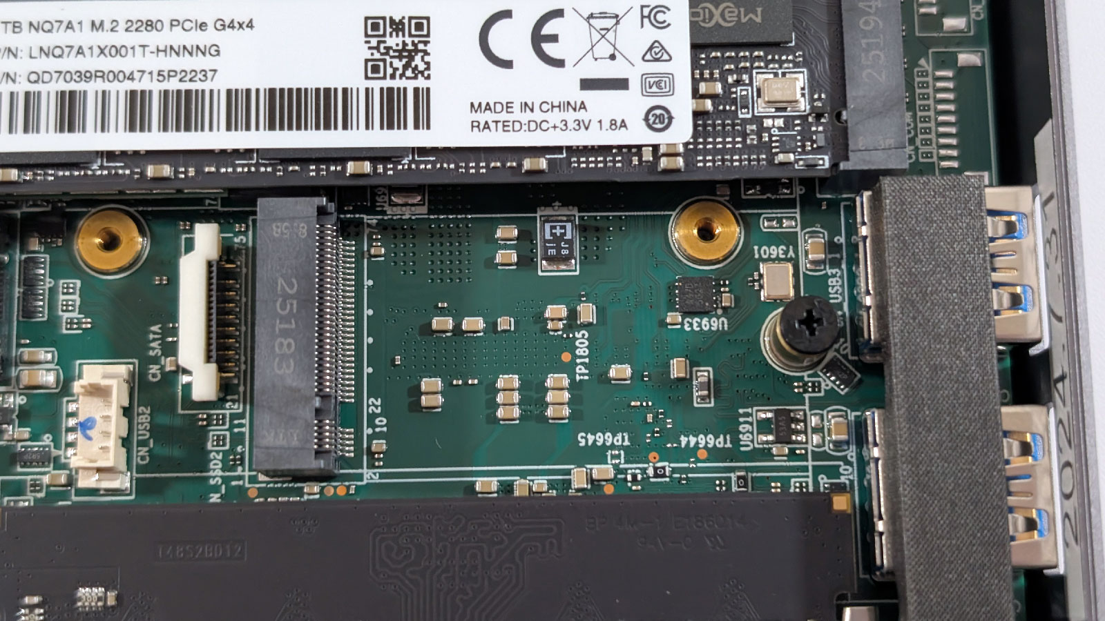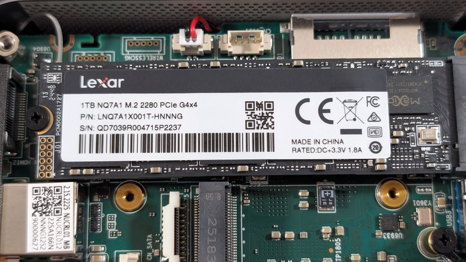 LexarのM.2 SSD Gen4×4 NVMe 1TBモデルが刺さってます。