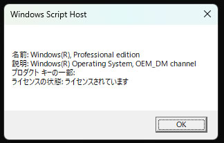 Windows 11 ProはちゃんとOEMライセンスのものでした。