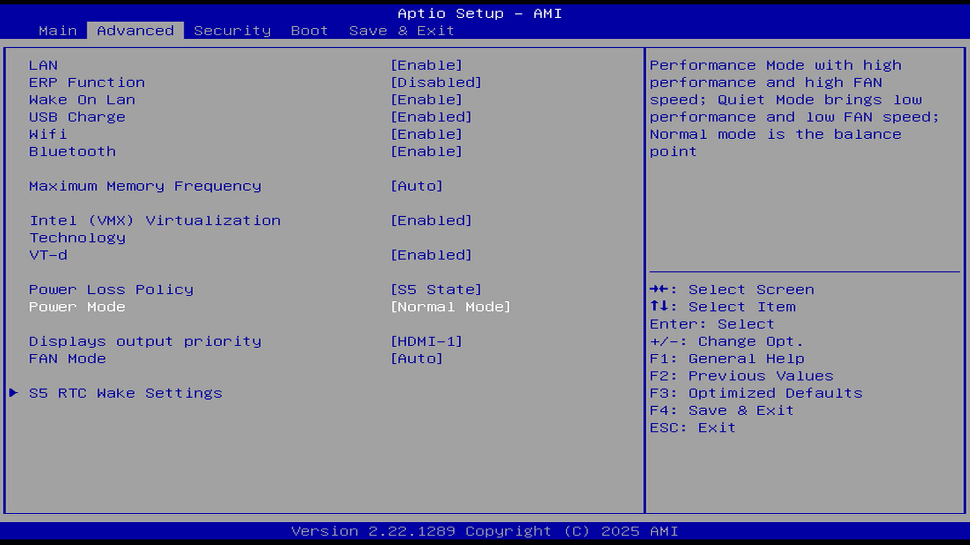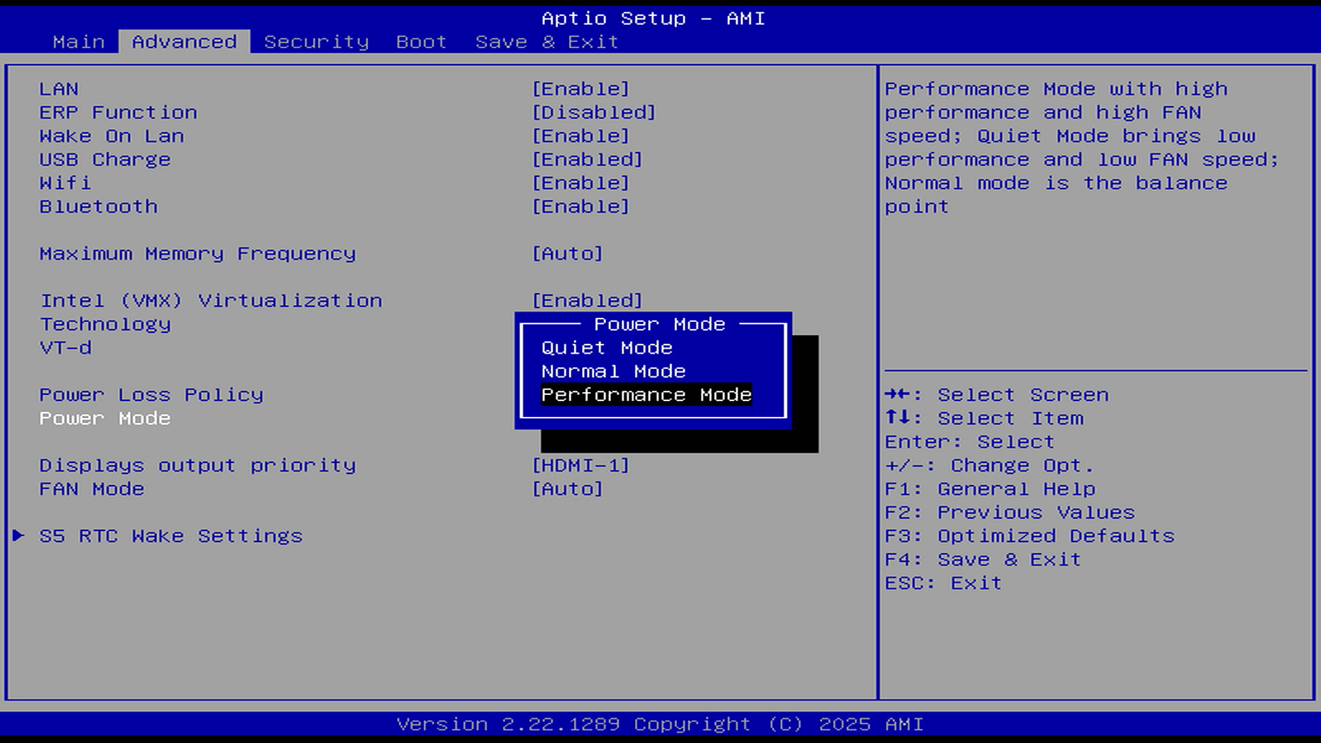 BIOSを起動し、【Power Mode】を【Normal Mode】から