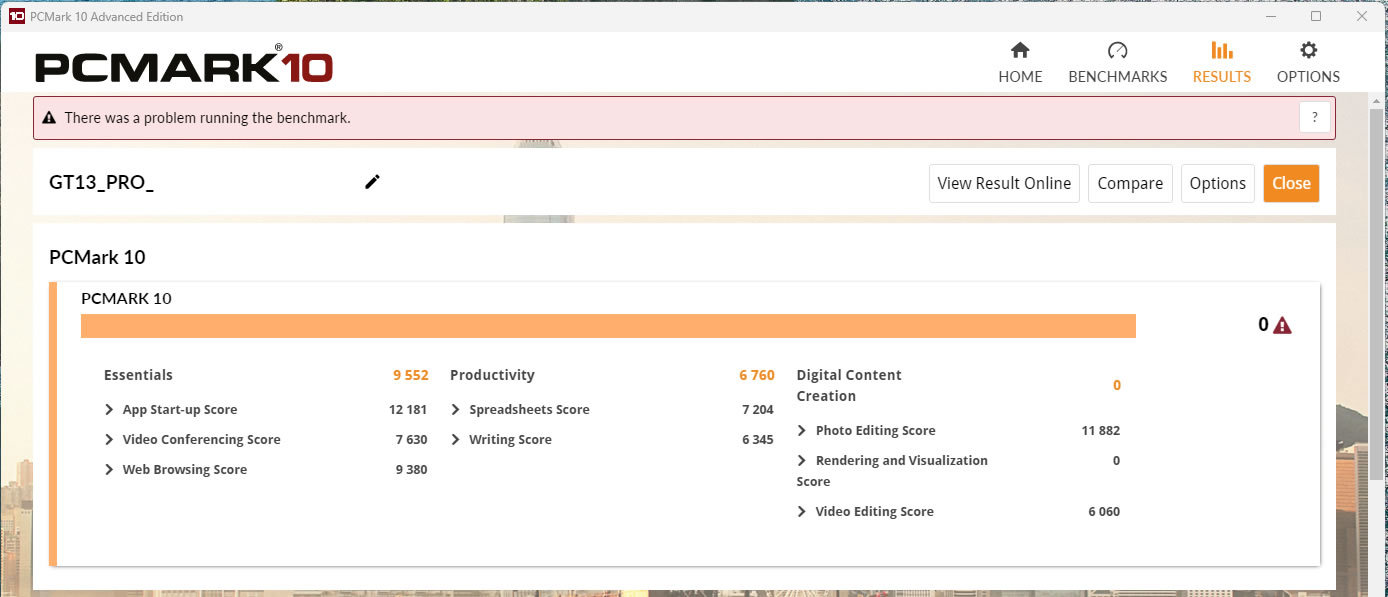 が、ここで【Rendering and Visualization score】の項目でエラーが出ます。