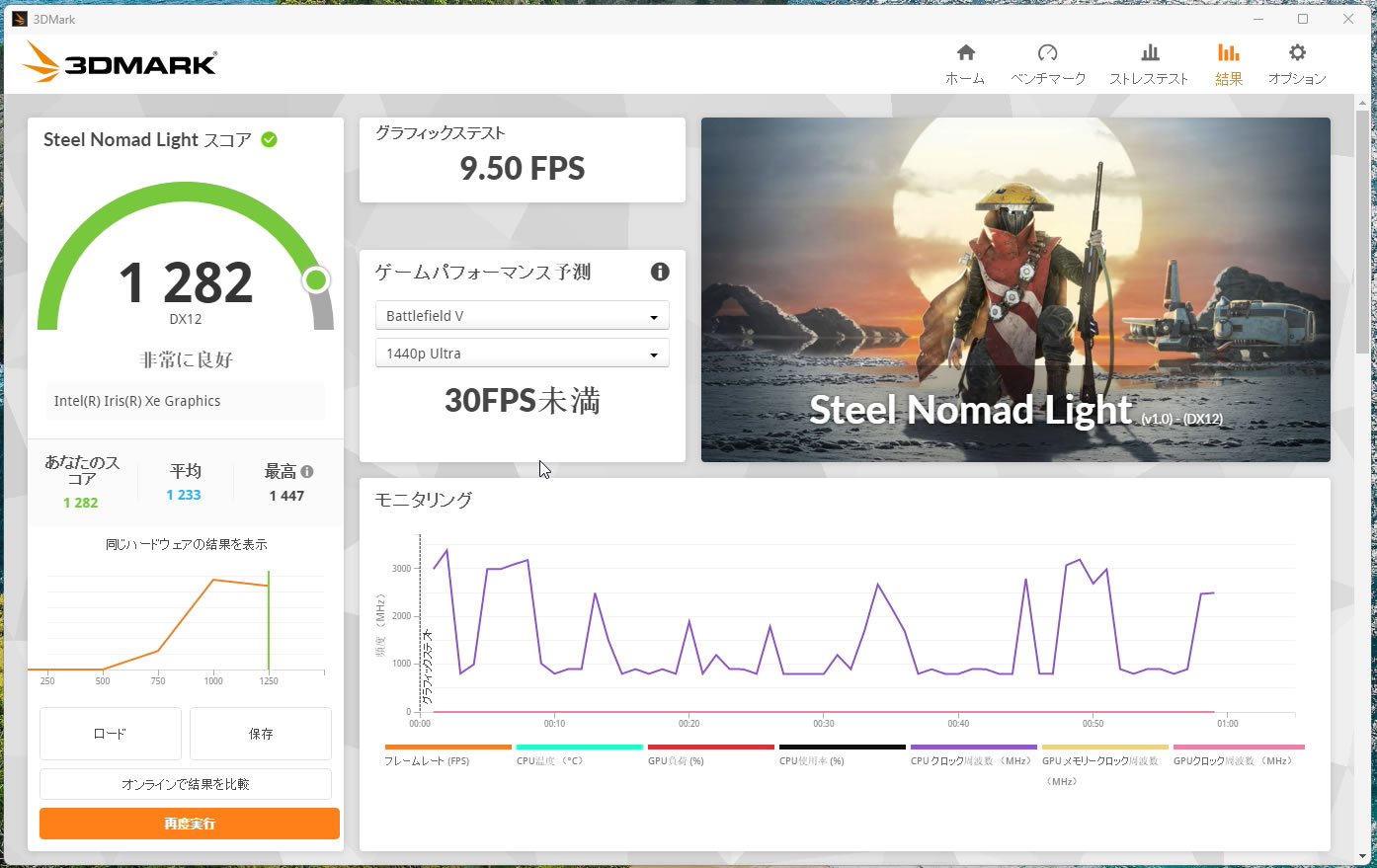 結果は「Steel Nomad Light」のスコアで1,282(非常に良好)となりました。