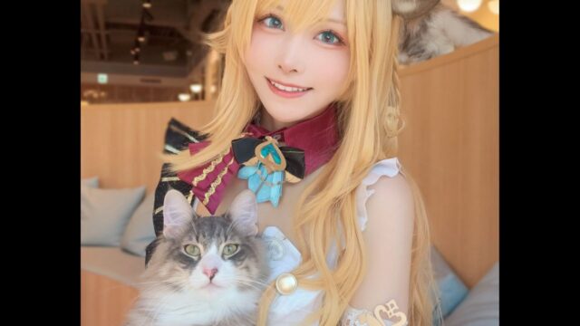 猫カフェでキュートな一枚! えい梨、『原神』エスコフィエのコスプレを披露