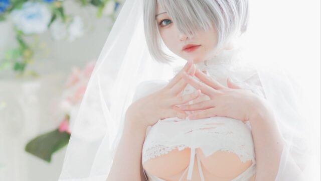 神秘的な白花嫁! 水瀬あいり、『NieR:Automata』2Bの花嫁衣装で美しさを披露