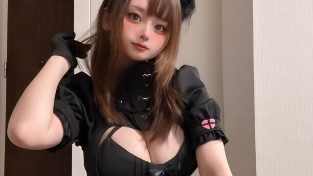透け透けがたまらない! 天然水、セクシーすぎる黒のシースルーメイドコスプレを披露