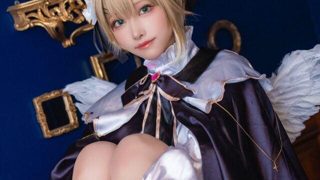 天使のようなのあちゃん! えい梨、VTuber胡桃のあのコスプレで体育座りの可愛さを披露