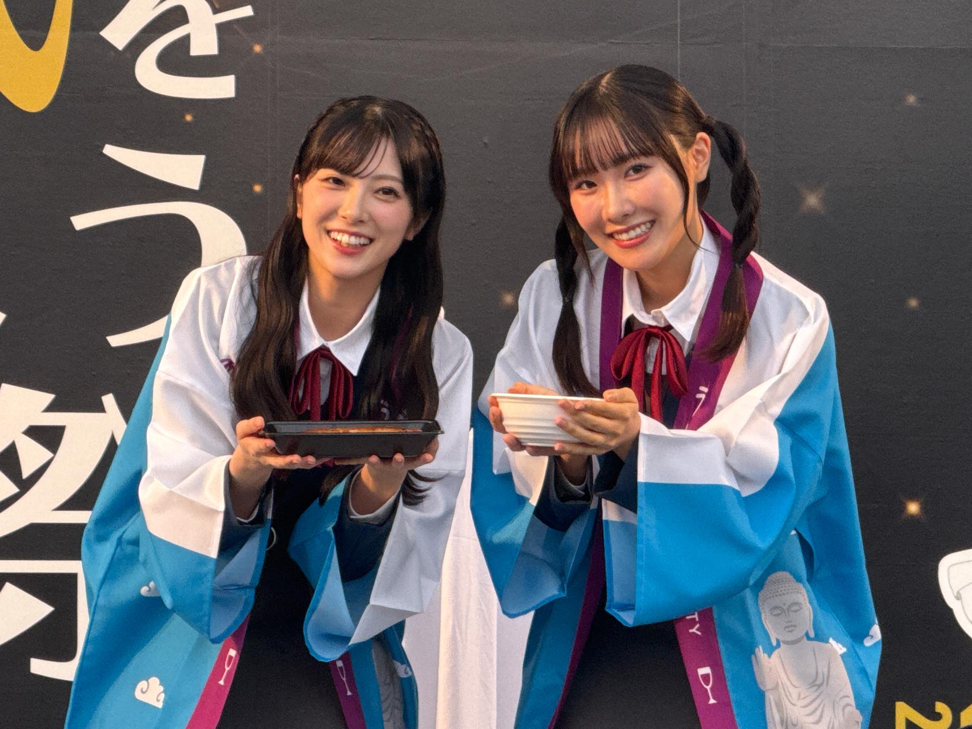 結那さん(ウィーン・マルガレーテ 役)、板倉花さん(鬼塚冬毬 役)が登壇し、茨城の食の魅力やイベントの楽しみ方を語りながら、来場者と一緒に盛り上がる時間となりました。
