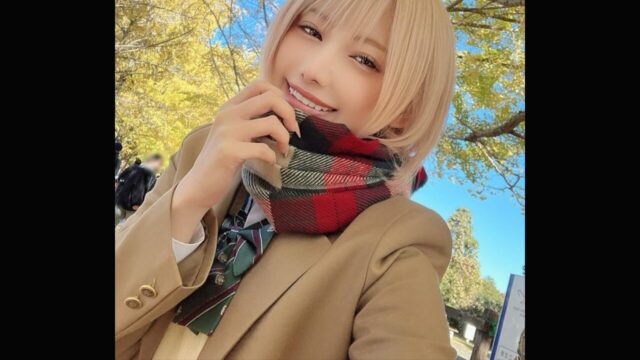 秋の紅葉に映える金髪ショート! 篠崎こころ、爽やかな制服×マフラー姿で笑顔全開
