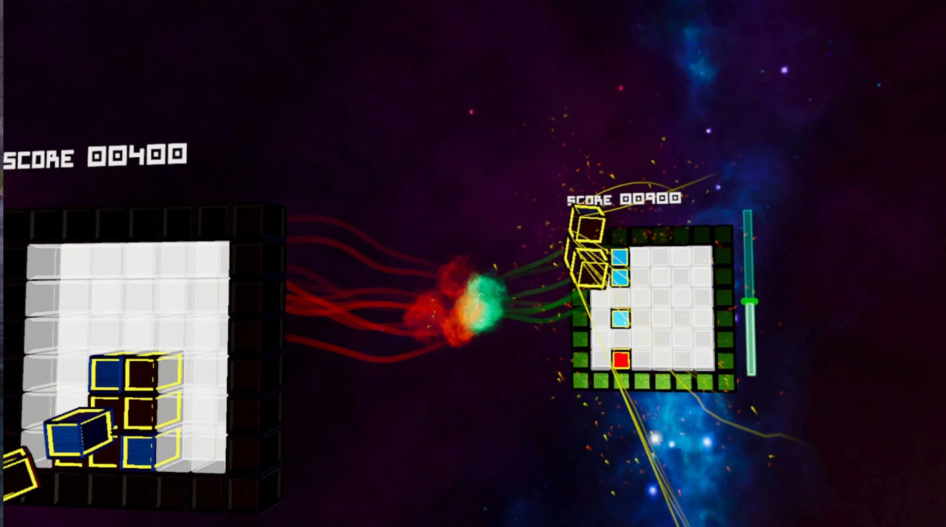 ゲームの核心となるのは、拳でブロックを破壊してコンボを決める爽快なアクションです。プレイヤーはVRコントローラーを使って実際にパンチを繰り出し、グリッド状に配置されたブロックを破壊していきます。破壊時には大量の粒子エフェクトが飛び散り、視覚的にも非常に派手で爽快感のある演出が楽しめます。