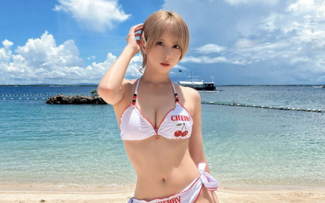 夏の女! 堕天ろあ、チェリー柄ビキニで沖縄ビーチの自撮りを公開
