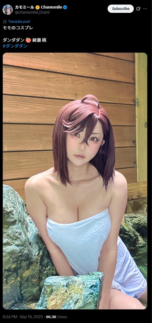 コスプレイヤーのカモミールさんが9月19日、人気アニメ『ダンダダン』のヒロイン綾瀬桃(あやせ もも)のコスプレ写真をXで投稿しました。