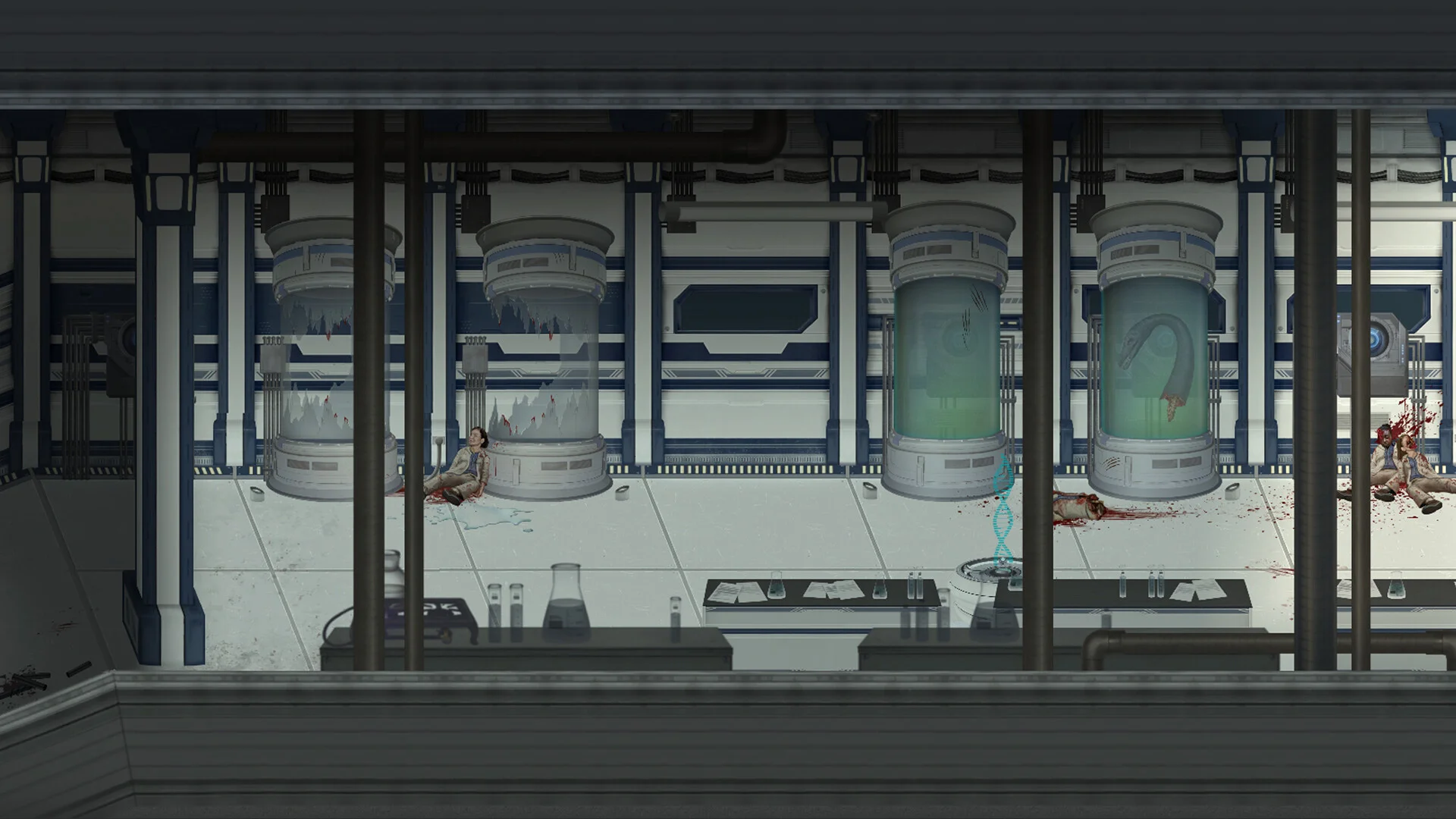 探索の舞台は多岐にわたり、血塗られた研究施設の暖炉の部屋から、純白の培養槽が並ぶ近未来的な実験室、そして赤く染まる荒野まで、様々な環境が用意されています。グラップリングフックを使った移動や、暗視モードでの倉庫探索など、多彩なアクション要素も盛り込まれています。