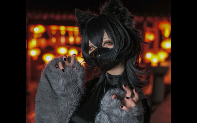 ミステリアスな夜の魔女! むつき、黒猫耳と毛皮で妖艶な雰囲気を演出