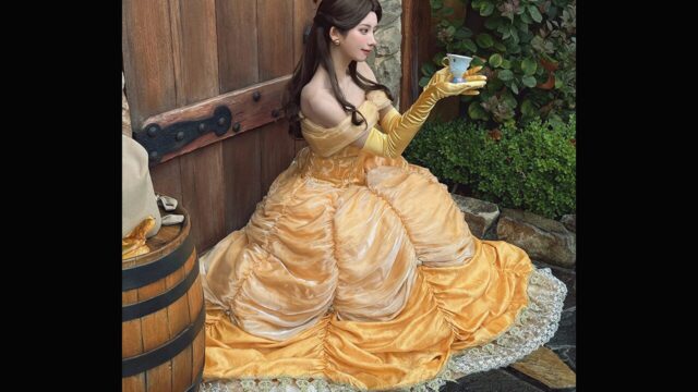 黄金のプリンセスが降臨! えなこ、『美女と野獣』ベルの豪華ドレスでディズニーハロウィンを彩る