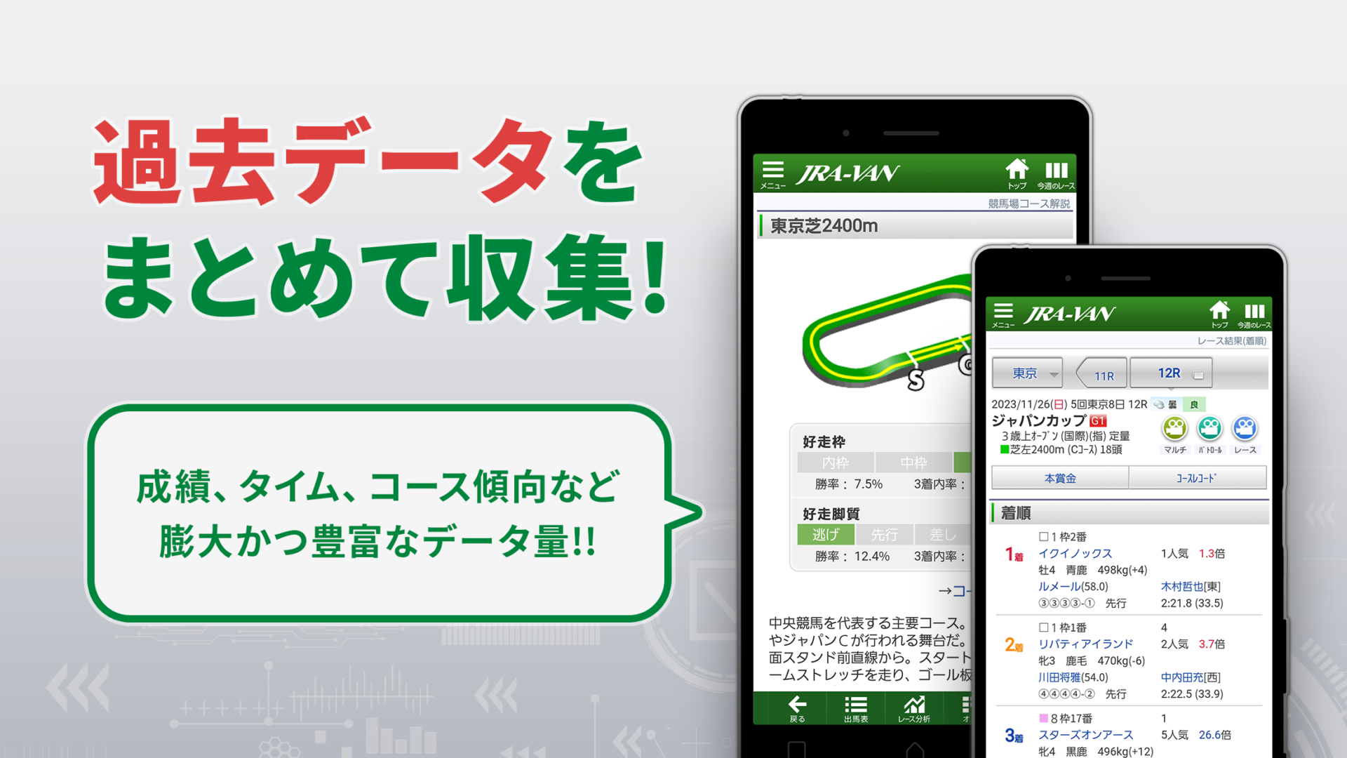 より深い分析、より確かな予想へ———『JRA-VAN競馬情報・競馬予想』なら、それが可能です。