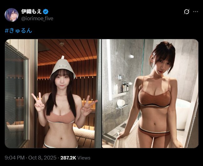 コスプレイヤー・ストリーマー・ラジオDJ・グラビアアイドル・ユニアリの伊織もえさんが10月8日、サウナハット姿の写真を「#きゅるん」というハッシュタグとともに投稿し、ファンから大きな反響を呼んでいます。