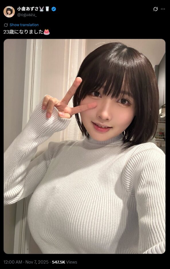 ファンからは「ハッピーバースデー🎊🎊 誕生日おめでとう!!」、「おぐあずおめでとうーーー!!!!!」、「お誕生日おめでとう」、「HAPPY BIRTHDAY✨ 素敵な1年になりますよーに🥰」、「どんどんBIGになっていくおぐあずを応援しています🎉」、「面白くて可愛いおぐあず大好き」といったお祝いのコメントが寄せられていました。