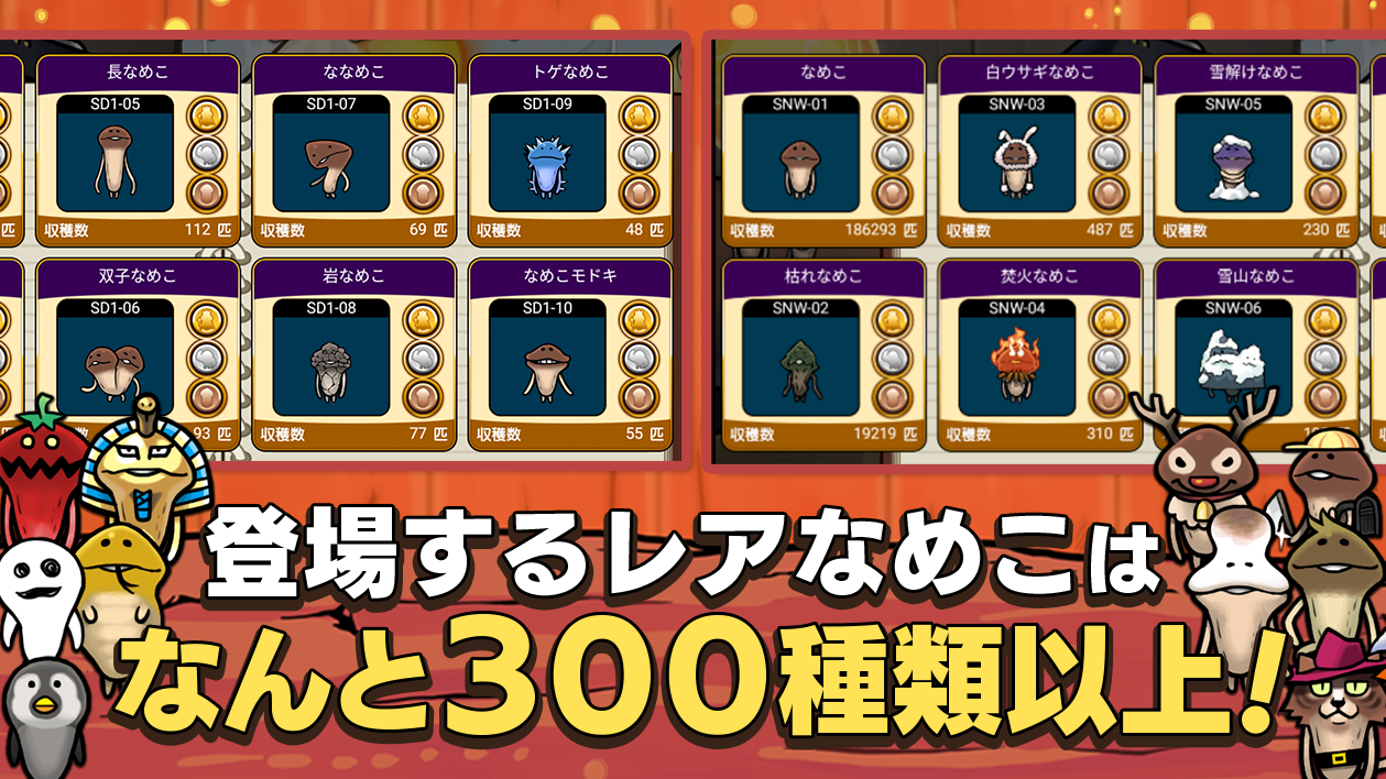 また、各”なめこ”は一定数収穫すると「なめこミュージアム」に収録され、自分だけの“なめこ図鑑”として楽しむことができます。眺めているだけでも癒されるゆるかわなビジュアルは、ストレス社会の一服の清涼剤♪ 忙しい日々の合間に、なめこたちの姿を眺めて一息つく———そんな遊び方もできるゲームです。