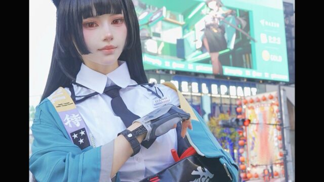 クールで美しい雅のコラボ姿! 月海つくね、『ゼンレスゾーンゼロ』星見雅コスプレで新宿広告を見学