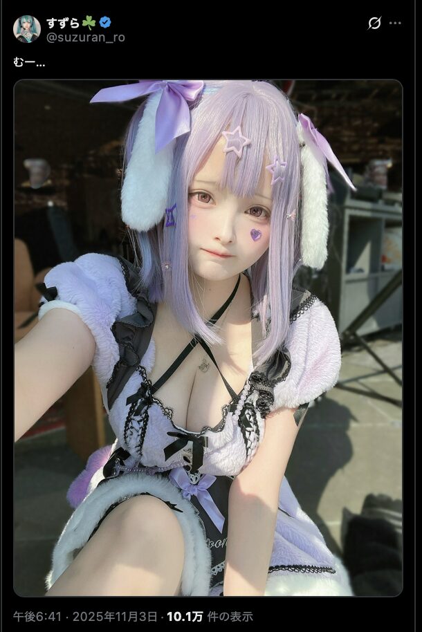 フリーのコスプレイヤーのすずらさんが11月3日、紫×水色のうさ耳コスプレ写真をXで投稿しました。