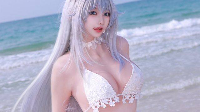 海辺で魅せる絶対領域! 小新、『アズールレーン』信濃の白ビキニ姿で圧倒的セクシーさを披露