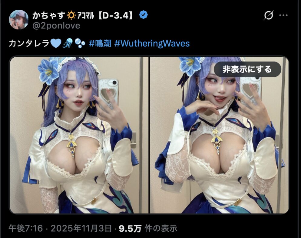 白と青の衣装が話題に! 市橋、『鳴潮』カンタレラのコスプレでファンを魅了