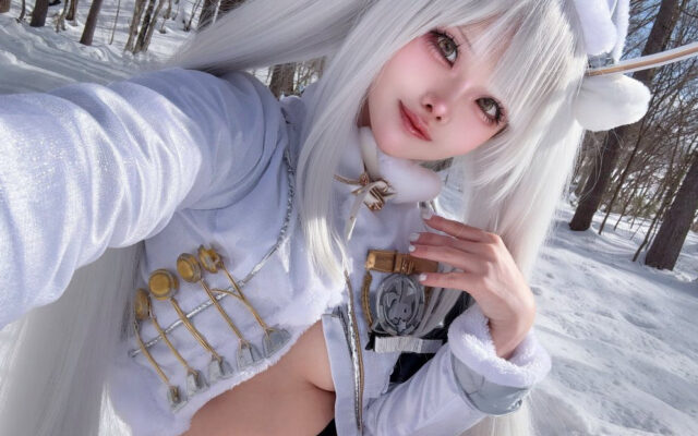 雪景色が映える白銀の美女! さや、『勝利の女神:NIKKE』ブラン フォーチュンエクスプレスの雪ロケコスプレを公開