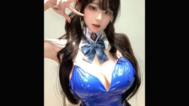 エッチすぎるバストライン! ying、青いエナメルボディスーツで魅せる究極セクシーコスプレ