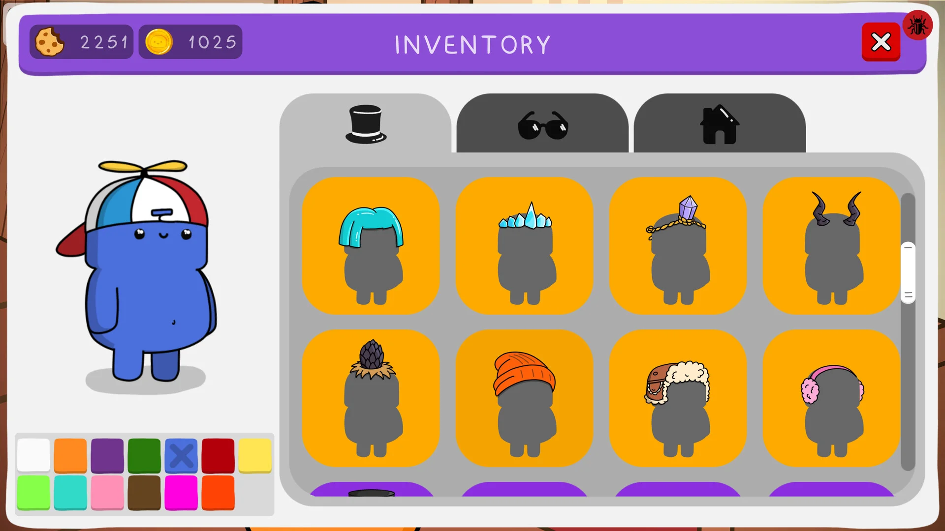 インベントリ画面では、帽子やアクセサリーなど様々なアイテムでキャラクターをカスタマイズできます。悪魔の角を持つ赤いキャラクターや、シェフ帽をかぶったピンクのキャラクターなど、個性豊かな見た目で他のプレイヤーとの差別化を図れます。クッキーとコインを使ってアイテムを購入し、自分だけのオリジナルキャラクターを作り上げる楽しみも用意されています。