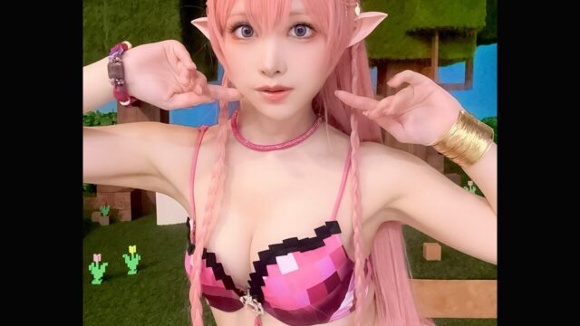 ピンクの踊り子が可愛すぎる! えい梨、マインクラフト風ビキニでヤングガンガンアンケート呼びかけ