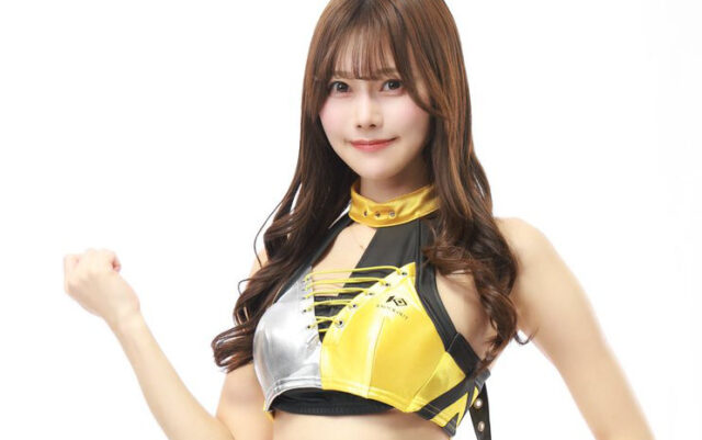 危険な魅力が漂う黄色コス! 桃里れあ、『KNOCK OUT』YELLOWチームのラウンドガール衣装を披露