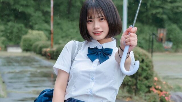 雨の日でもキュートな学生服! まめだいふく、透明傘を持った制服姿で優しさ溢れる一枚を披露