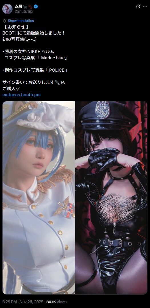 コスプレイヤーのム月さんが11月26日、初の写真集2作品の通販開始をXで発表しました。