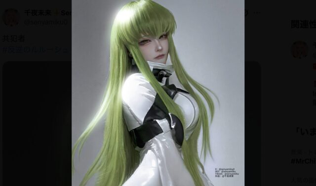 妖艶な緑髪が映える! 千夜未来(せんやミク)、『コードギアス』C.C.の大人っぽいコスプレを披露