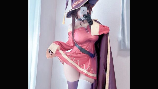 魔法よりも視線を集める爆裂ボディ! まおうてゃん、『この素晴らしい世界に祝福を!』めぐみんのコスプレを披露