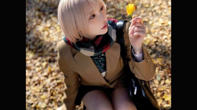 小さな秋を見つけた金髪美少女! 篠崎こころ、制服姿で落ち葉を持った可愛らしい写真を公開