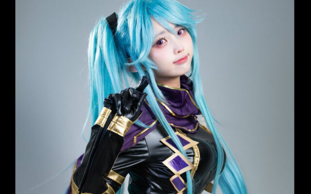 コスプレイヤーのえびさんが12月13日、紫色のミディアムヘアが印象的なコスプレ写真をXで投稿しました。