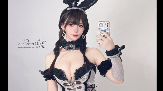 セクシー満点のバニーガール! Momiko紅葉、黒×グレーの大人っぽいコスプレ衣装を自撮り公開